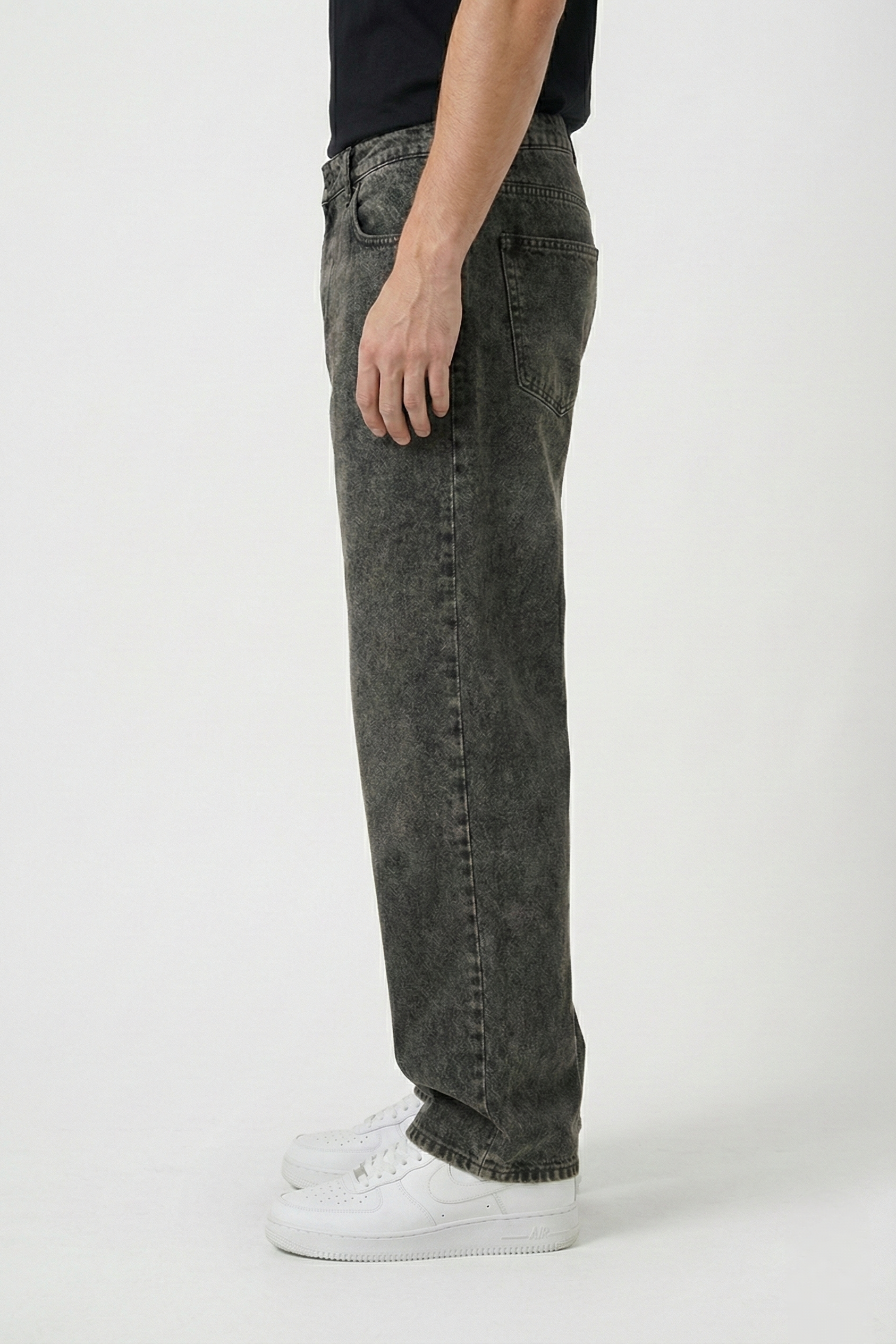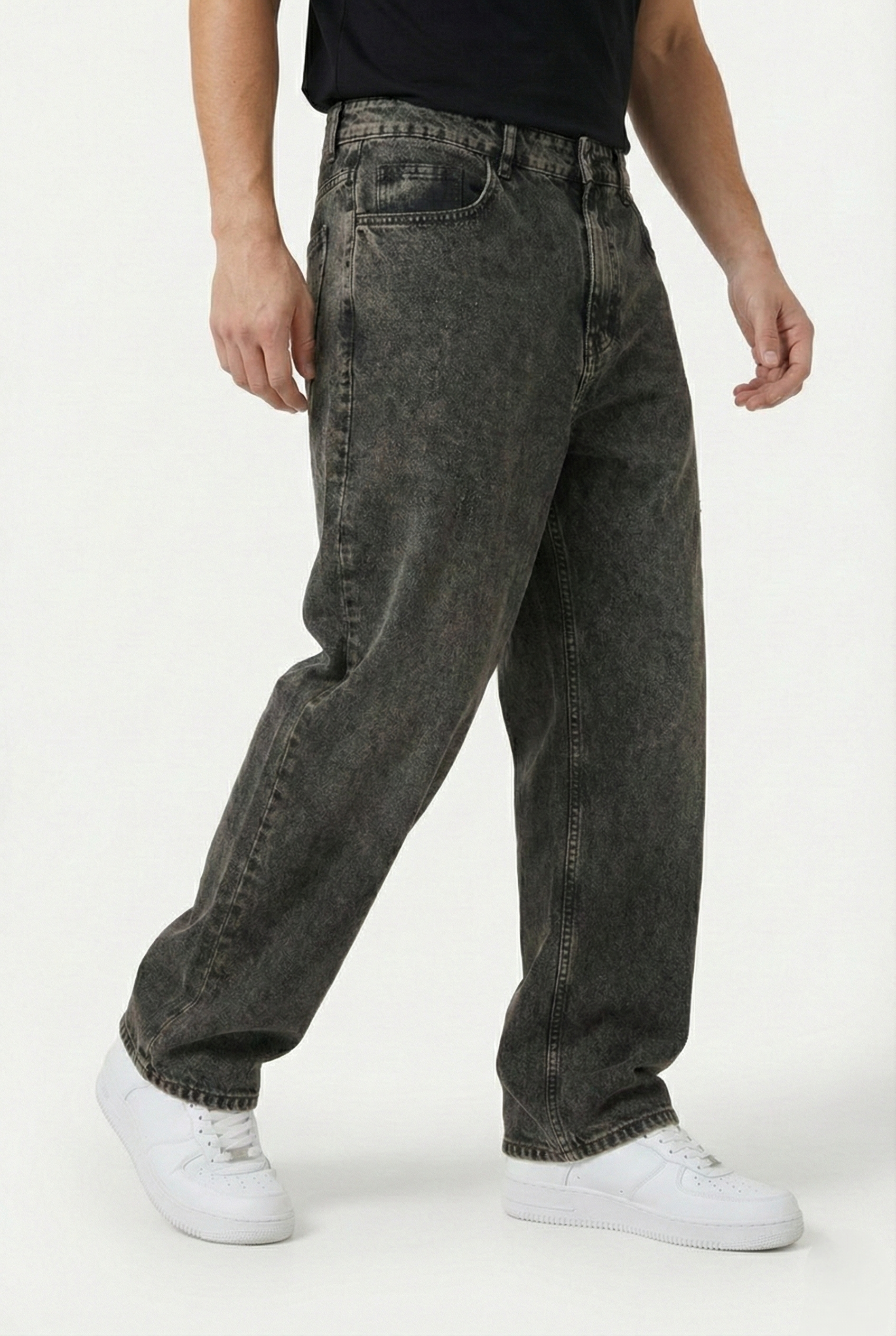 شلوار بگ مردانه جین دودی قهوه ای خام شور با کیفیت بالا MB339