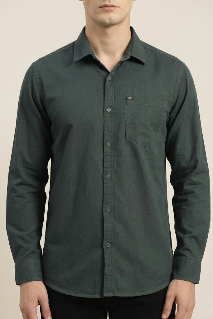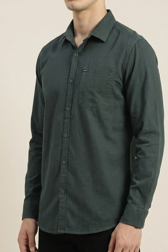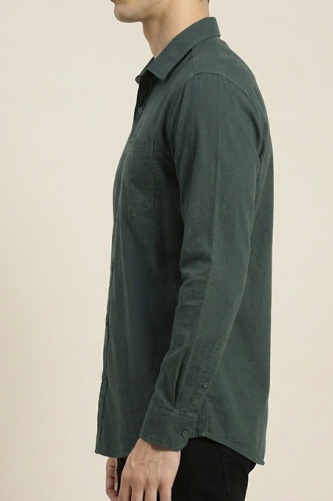 پیراهن مردانه سبز تیره آستین بلند نخ پنبه 511