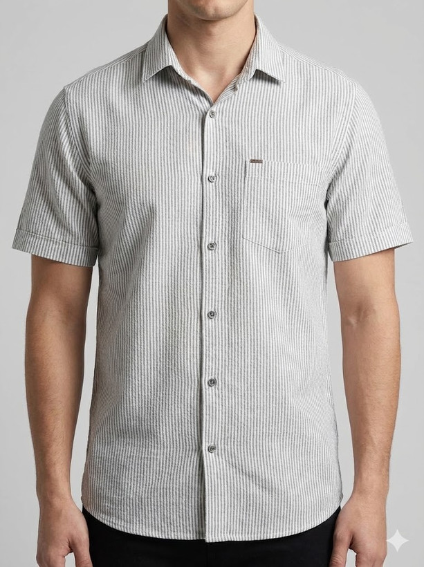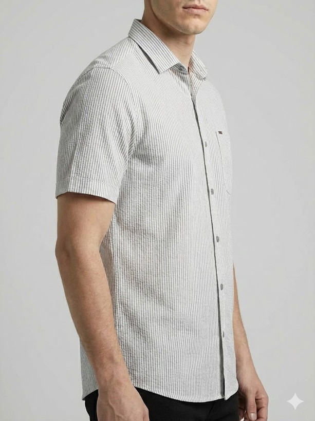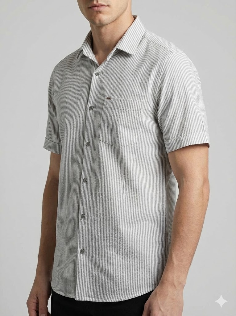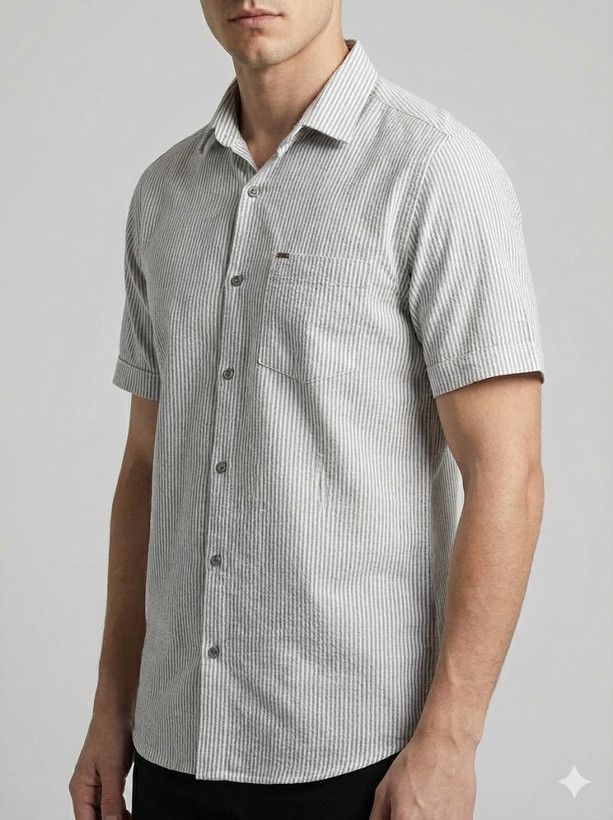 پیراهن مردانه آستین کوتاه راه راه کنفی طوسی 712