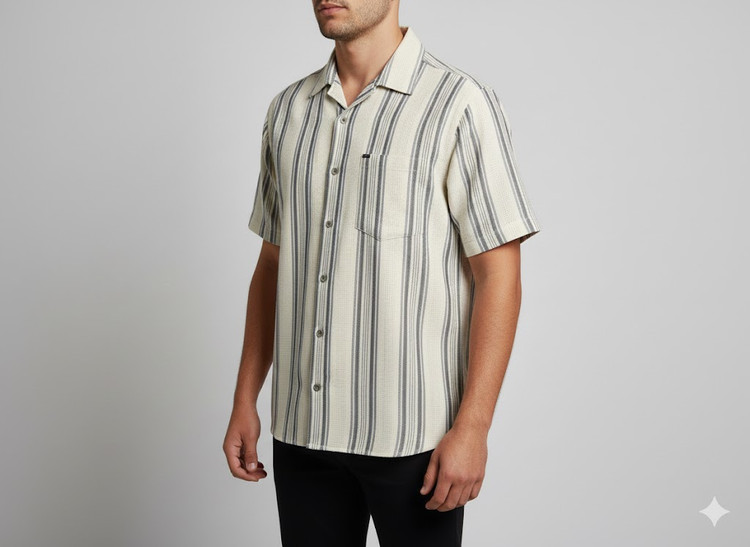 پیراهن مردانه آستین کوتاه راه راه کنفی طوسی 715