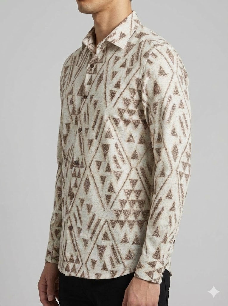 پیراهن کنفی مردانه آستین بلند طرحدار کرم موکا801