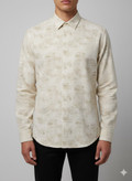 پیراهن مردانه آستین بلند کنفی طرحدار کرم 201