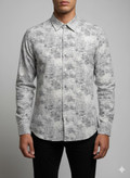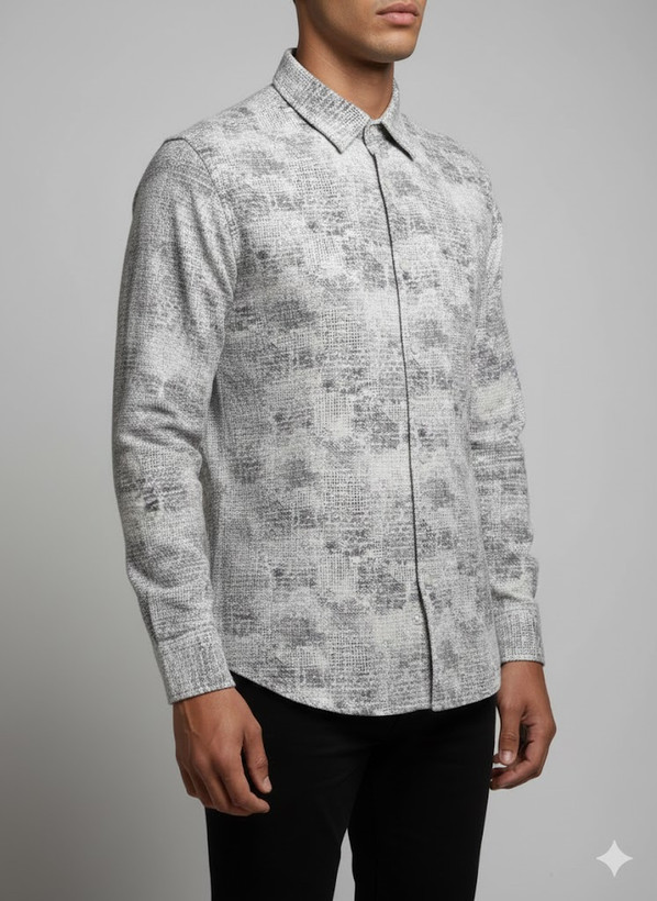 پیراهن مردانه آستین بلند کنفی طرحدار طوسی تیره 301